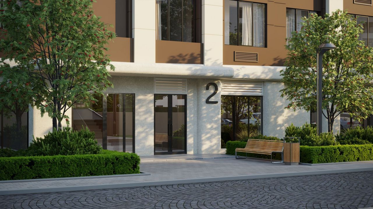 Входы в подъезд расположены на уровне земли, без лестниц и пандусов, для дополнительного удобства.